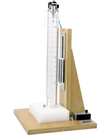 フォームラバー、ウレタンフォーム、その他各種プラスチックフォームの試料に500mmの高さからφ5/8inchの鋼球を自由落下させ、その反発最高到達時の高さを読みとって、反発弾性を測定します。